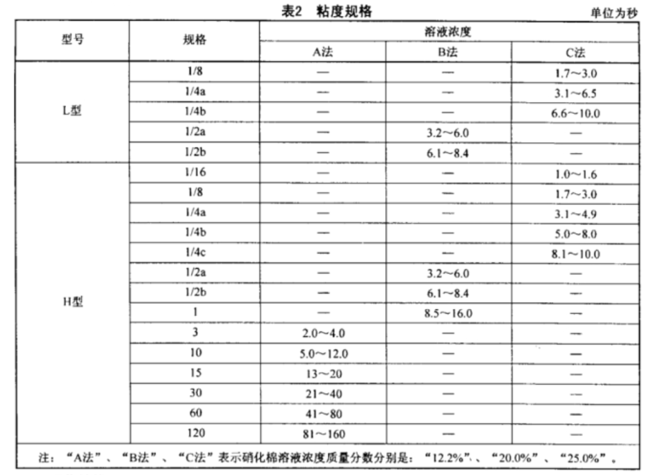 ▼WJ 9028-2005中规定的涂料用硝化棉黏度规格