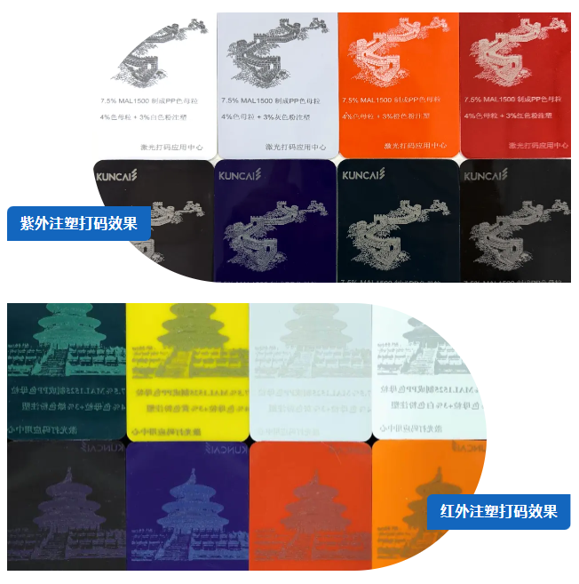 注塑应用:将该系列激光打码产品粉末或产品母粒与塑料原料混合后注塑,产品均匀分布于制品内部,形成隐蔽且耐磨的标识层。红外打码对比度高,紫外打码精度优异,即使表面打磨后标识依然清晰。