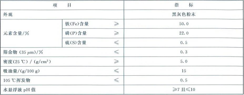 本标准对涂料用磷铁粉防锈颜料的外观、元素含量、筛余物含量、密度含量、吸油量、挥发物含量、水悬浮液 pH 值等指标进行了详细规定。规范了磷铁粉防锈颜料的生产和应用,有助于提高整个行业的技术水平和产品质量。(如下图)