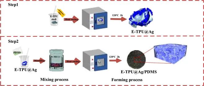湖北民族大学智能科学与与工程学院、超轻弹性体材料绿色制造国家民委重点实验室的研究团队通过简便的喷涂工艺制备了E-TPU@Ag/PDMS复合材料。