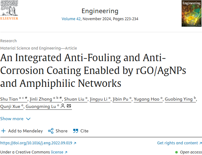 阅读全文>>中国研究团队开发了一种基于载银石墨烯和两亲网络的兼具防腐与防污性能的海洋防护涂层,具有性能优异、制备简便、施工友好及易于规模化推广的显著优势。